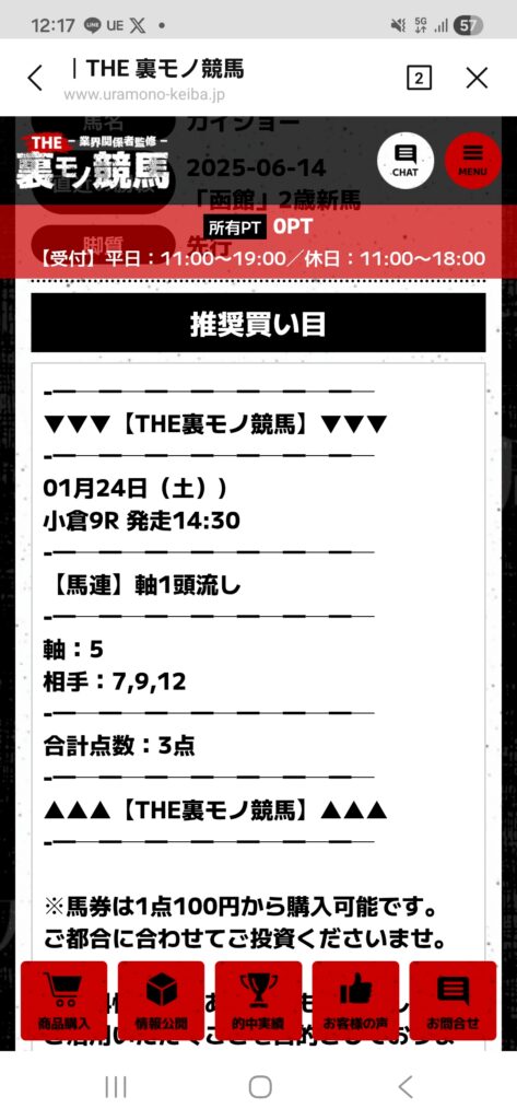 「裏モノ競馬」の凄いところはたったの3点予想で的中しているということです!