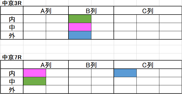 過去3年の展開分析に加え、土曜の中京ダート1800mの結果も同様に分析して、同じ結果となりました。