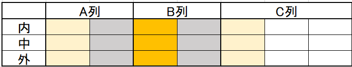 A列、B列、C列の前側が強く、A列B列の後ろ側が弱いです。