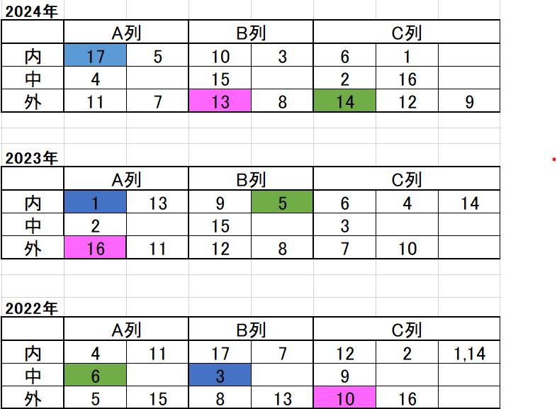 これまでと違うのは、この展開予想表の過去3年を分析し特徴を見つけます。