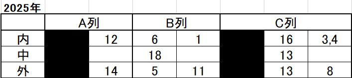 あとはB列前側の中外が次点となります。